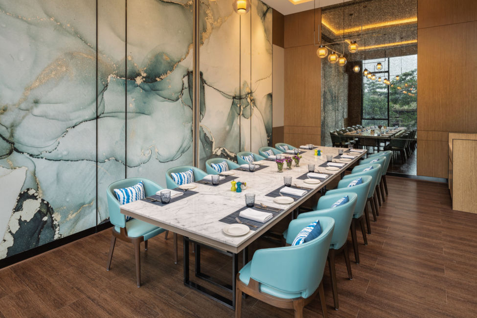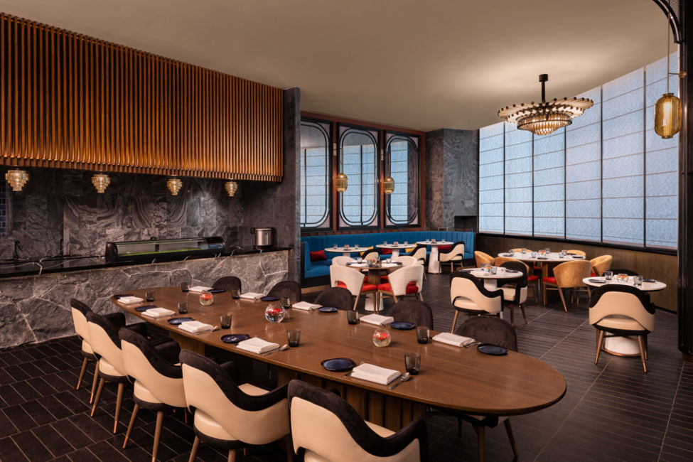At Goma, find pan-Asian cuisine with a focus on Japanese, Chinese, and Thai flavors. Discover dishes prepared, smoked, and cooked to perfection. In terms of design, bold, graphic, and layered elements reflect the combination of different cuisines coming together as one.